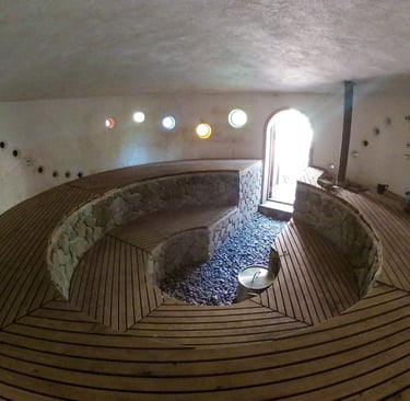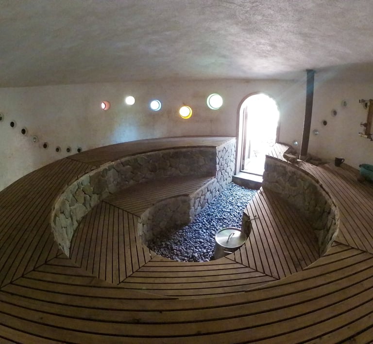 The Sauna at Casa Kula is a beautiful natural build using Lyme plaster and natural drainage and can hold up to 25 participants.